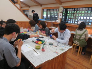 今年は、中野警察署長以下中野警察署ヤングドライバーズクラブ員の方が絵付け作業を行い、高齢者に対する交通安全を願いながら作業を一緒に行いました。