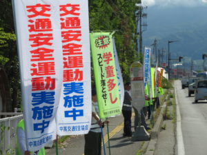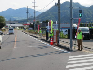 運動初日は、北信地域振興局主催の人波作戦が一本木西交差点付近で行われ、中高交通安全協会からも大勢の会員が参加しました。